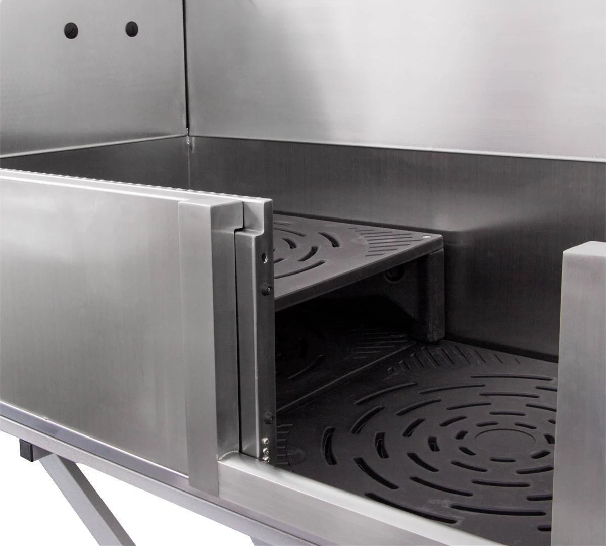 - Backsplash and side panels can fold down for easy transport.