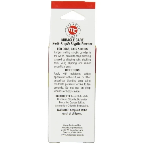 - A uniquely formulated styptic powder for use on dogs, cats and birds to helpย stop bleeding caused by clipping nails, docking tails, trimming beaks and minor cuts.ย
